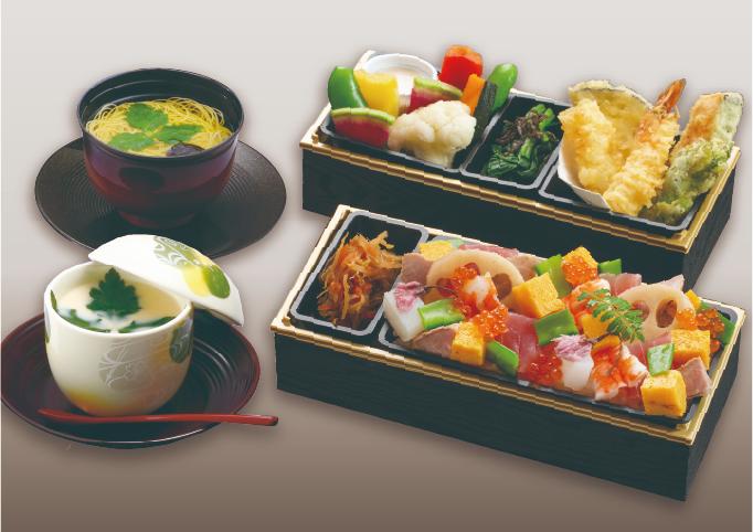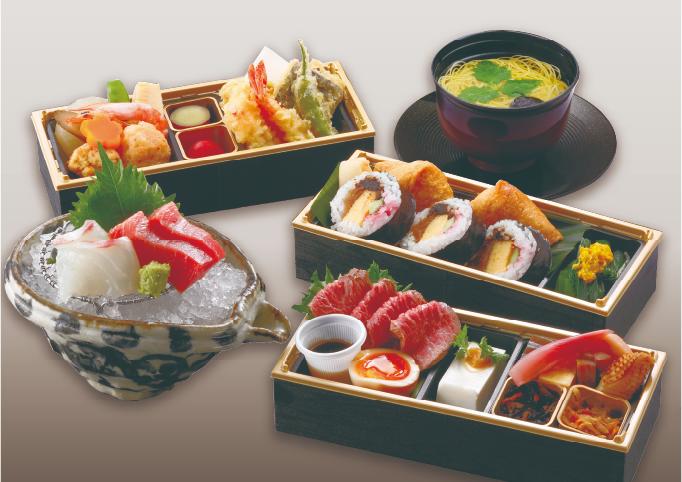 お座敷では持ち帰り出来る「箱膳」と、器でお出しする「懐石料理」がございますのでお好みでお選びください。